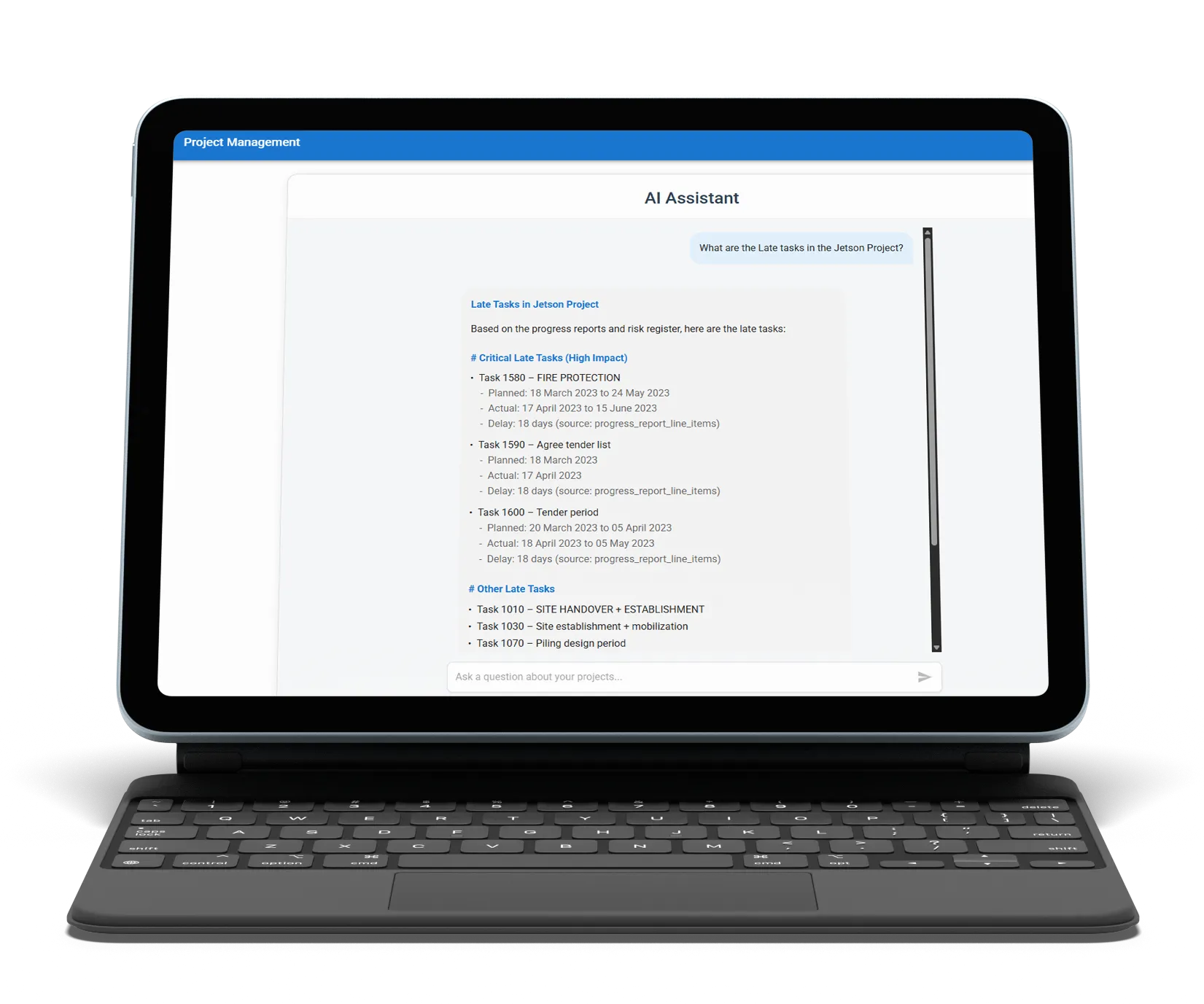 Our AI-powered project management software weaves a “golden thread” through your construction projects by centralizing all documentation and data in one accessible platform. Our AI tool flags what’s affected and alerts the key stakeholders, so decisions can be made and the project stays on track.